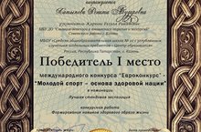 Международный конкурс "Евроконкурс" - "Молодой спорт-основа здоровой нации" 29.01.2018