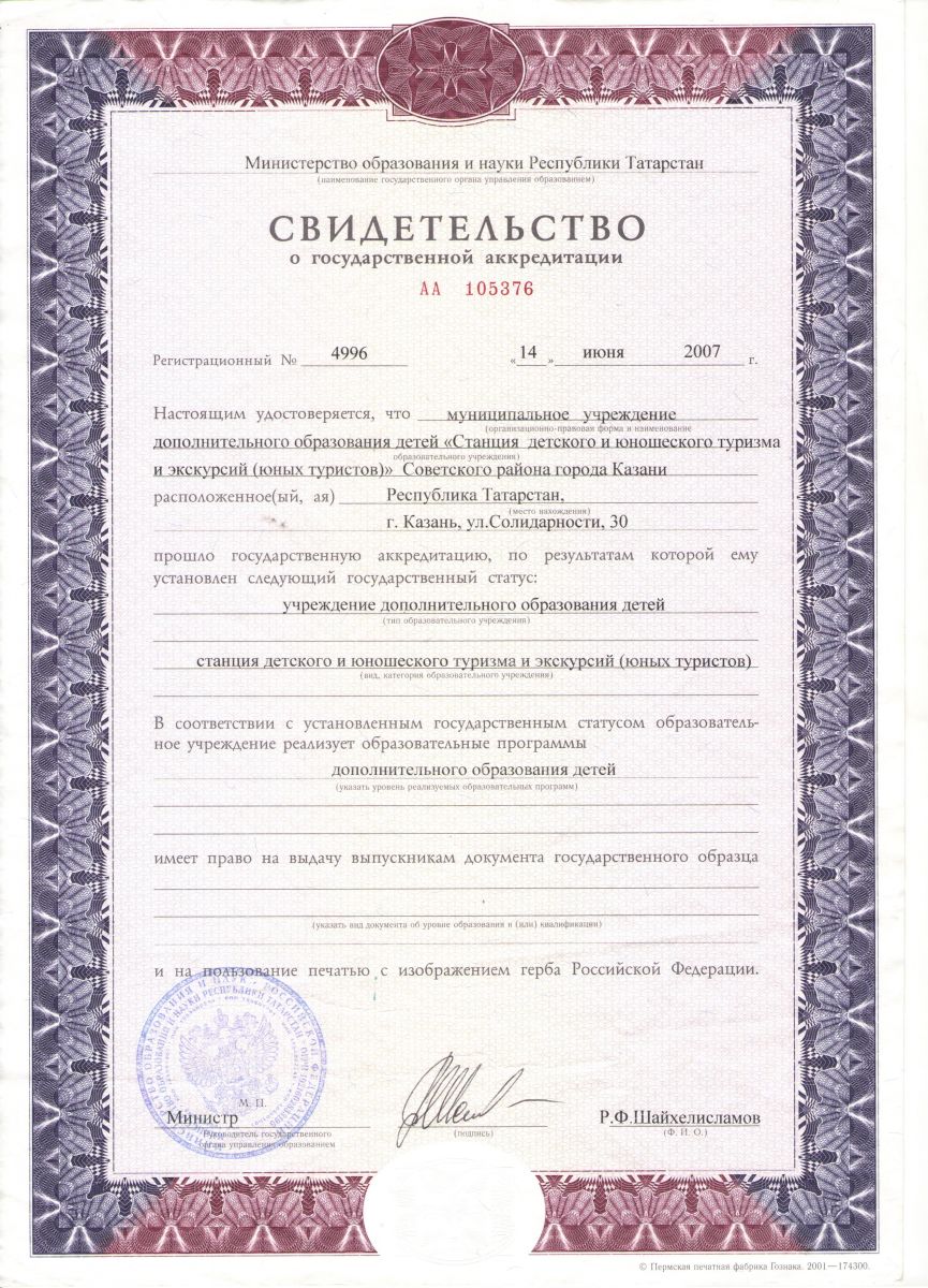 Свидетельство о государственной аккредитации