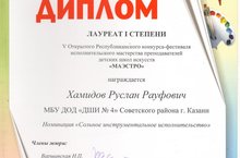 1 ноября состоялся Республиканский конкурс профессионального мастерства "Маэстро" , в котором приняли участие преподаватели нашей школы Хамидов Р.Р - Лауреат I степени, Гарифзянов С.З.- Лауреат II степени. Поздравляем!!!
