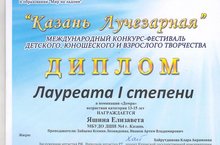 31октября в Молодежном центре «Ак Барс» прошел Международный конкурс «Казань Лучезарная». Яшина Елизавета (пр.Зайцева К.Л., конц. Иванов А.В.) стала Лауреатом I степени. Поздравляем!!!