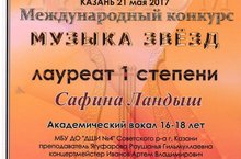 21 мая прошел Международный фестиваль-конкурс "Музыка звезд" , на котором с успехом выступили вокалисты класса преподавателя Ягуфаровой Р.Г. САфина Ландыш стала Лауреатом I степени, Яруллина Камилла - Лауреат II степени, Медведева Виктория- Лауреат III степени, Голикова Ксения -Лауреат II степени. Поздравляем!!!