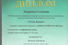 17-19 февраля в Казани проходил Международный конкурс "Адмиралтейская звезда" . Данилова Анастасия (пр.Маликова А.Я., конц.Садыкова В.В.) - Лауреат I степени Поздравляем!!!
