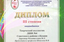 Сегодня в КЦ "Сайдаш" состоялась церемония награждения победителей фестиваля творчества работников образования Советского района г.Казани , посвященного году Российского кино и 25-летию конкурса "Звездопад". Поздраляем творческий коллектив ДШИ №4 с присуждением Диплома III степени!