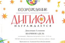 15 мая в г.Казани в ДК «ПОЛИМЕР» состоялся Всероссийский межнациональный конкурс-фестиваль «Возрождение». Шарипов Адель (пр.Тадовская О.В.)гитара - Дипломант 1 степени.Поздравляем!!!