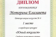 Поздравляем Лауреатов Городского конкурса "Юный вокалист", учащихся класса вокала преподавателя Маликовой А.Я. : Гимадеев Марсель - Лауреат I степени в младшей возрастной группе, Моторина Лиза - Лауреат I степени в средней возрастной группе, Бурнашева Алина - Лауреат I степени в старшей возрастной группе.