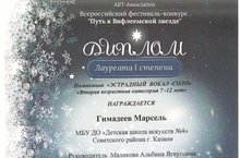 В дни Светлого Рождества в Доме дружбы народов прошел Первый всероссийский фестиваль-конкурс «Путь к Вифлеемской звезде», в котором приняли участие учащиеся класса вокала пр.Маликовой А.Я. : Дедкова Полина - Лауреат I степени, Гимадеев Марсель- Лауреат I степени, Данилова Анастасия - Лауреат III степени. Поздравляем!!!