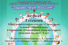 Поздравляем лауреатов Международного конкурса-фестиваля детских и юношеских хореографических коллективов "Здравствуй, Россия!": Хореографический коллектив "Сладкоежки"(рук. Гареева А.С., Шайхутдинова А.А.) - Лауреат I степени в номинации "современный танец на эстраде" , Хореографический коллектив "ЛЭВИС"(рук. Гареева А.С., Шайхутдинова А.А.) - дипломант II степени.