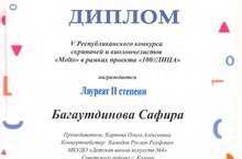 9 февраля учащиеся отделения струнно-смычковых инструментов приняли участие в V Республиканском конкурсе скрипачей и виолончелистов «Molto», который проходил в рамках проекта «100//ЛИЦА». Мы рады сообщить, что Сафира Багаутдинова (класс преп. Карповой О. А.) и Артур Саттаров (класс преп. Арнольдовой И. Р.) стали Лауреатами II степени. Выражаем благодарность нашим концертмейстерам: Хамидову Р. Р. и Муглетдиновой Е. Н. за их профессионализм и поддержку.