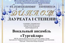 Вокальный ансамбль «Тургайлар» (рук. Ягуфарова Р.Г., Садыкова В.М.) стали Лауреатами 1 степени в Международном конкурсе вокального и инструментального творчества «Серебряные нотки» г.Москва. Поздравляем!!
