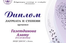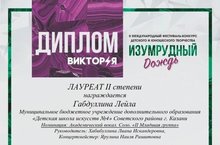 Габдуллина Лейла (преп. Хабибуллина Л.И., конц. Яруллина Н.Р.) - Лауреат II степени и Загидуллина Амина (преп. Хабибуллина Л.И.) - Лауреат III степени II Международного фестиваля-конкурса детского и юношеского творчества «Изумрудный дождь». Поздравляем!!!