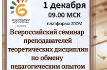 1 декабря Таланцева Наталья Алексеевна преподаватель нашей школы выступила на Всероссийском семинаре преподавателей теоретических дисциплин по обмену педагогическим опытом на тему :"Формы и методы работы по предметам музыкально-теоретического цикла: "Сольфеджио". "Музыкальная литература", "Слушание музыки", который проходил в ДШИ №6 (г. Ульяновск) в онлайн формате.