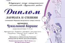 31 декабря в г. Мамадыш состоялся первый Республиканский конкурс детского творчества «Новогодняя звезда». Шишканов Иван (преп. Галлямова Э.Р) - Лауреат 1 степени, Газетдинов Азат и Сиразов Алмаз (преп. Галлямова Э.Р) - Дипломы за участие. Поздравляем !!!
