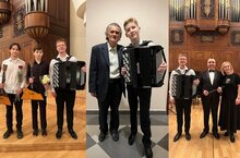 22 апреля в ГБКЗ им.С.Сайдашева состоялся концерт юных виртуозов Казани с оркестром народных инструментов Казанской консерватории под управлением Заслуженного артиста Республики Татарстан - Рустема Рахматуллина. На сцене выступили наши талантливые учащиеся Шишканов Иван (преп. Галлямова Э.Р.), Шакиров Алексей и Идиатуллин Булат (преп. Усов А.А.), Багавиев Камиль (преп. Гарифзянов С.З.). Они продемонстрировали своё мастерство, исполнив народные и классические композиции на баяне и балалайке, придав программе особую атмосферу. Всем преподавателям и участникам концерта желаем успехов и творческого подъёма, чтобы вы и дальше радовали нас своим искусством!