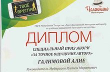 2 февраля в ДК "Юность" прошел Всероссийский фестиваль - конкурс "Твое время", в котором учащиеся театрального отделения под руководством Мударисова Р.М. показали следующие результаты: Галимова Алия - Лауреат 1 степени, Галимова Алия обладатель специального приза " За точное ощущение автора", Зайнуллина Аделина - Лауреат 3 степени, Корнильцева Сафия- Лауреат 3 степени, Решетилова Алина - Лауреат 3 степени, Хайдарова Самира - Лауреат 2 степени, Хатимова Язиля- Лауреат 3 степени. Поздравляем!!!