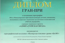 16 февраля состоялся 100 Международный фестиваль-конкурс детских, юношеских, молодежных, взрослых творческих коллективов и исполнителей «Vivat, Kazan!» в рамках творческого проекта «АДМИРАЛТЕЙСКАЯ ЗВЕЗДА». Хореографический коллектив «Куб.ру» (рук. Сладкова К.В., Яшина К.С.) – Гран-При и Лауреат 1 степени. Хореографический коллектив «Остров детства» (рук. Сладкова К.В., Яшина К.С.) – Лауреат 3 степени. Поздравляем!!!