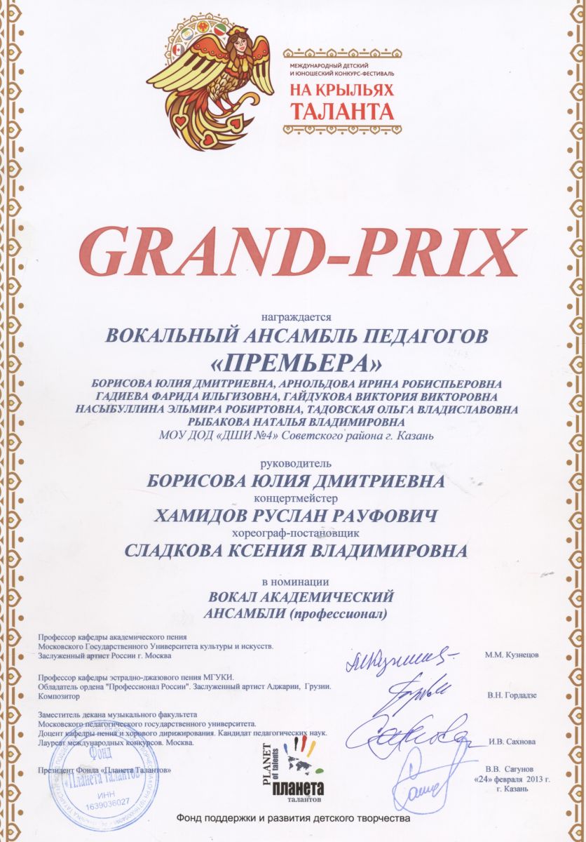 Международный конкурс "На крыльях таланта" -Вокальный ансамбль "Премьера"