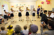 3 октября в детском саду № 230 прошел концерт, посвященный Дню Пожилого человека. В концертной программе участвовали и мы, представившие на новой для ДШИ концертной площадке, блок музыкальных номеров. Маленькие зрители и их бабушки были в восторге от музыки, прозвучавшей в исполнении скрипки, трубы, гитары, фортепиано, и наградили нас бурными аплодисментами.
