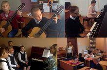 На фото: в Детской Школе Искусств № 6 (площадка СОШ № 141)-сентябрьские будни на уроках гитары, вокала, фортепиано, а также- первоклассники на уроке сольфеджио.