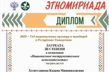 Поздравляем преподавателя Хуснутдинову Кадрию Минневалеевну , ставшую лауреатом престижного Международного конкурса-фестиваля традиционной культуры и народного художественного творчества «ЭТНОМИРИАДА», прошедшего в декабре в Казанскиом государственном институте культуры.