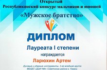 Поздравляем флейтиста Ларюхина Артема, преподавателя Зарипову Лилию Сулеймановну, концертмейстера Латушкину Ольгу Владимировну с победой на Открытом Республиканском конкурсе мальчиков и юношей «Мужское братство», состоявшемся в МБУДО «ДШИ № 3» 12 мая!