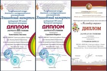 Гурьянов Кирилл - лауреат 1 степени, Хаметшина Эвелина - лауреат 3 степени «Алишевского камертона»!