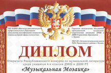 Учащиеся нашей школы приняли участие в Открытом Республиканском конкурсе по музыкальной литературе среди 4 классов "Музыкальная мозаика". По итогам конкурса показали следующие результаты: