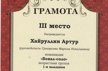 Кириеева Сафия - диплом лауреата 3 степени (рук. Ханова Т.В.)
