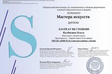 Поздравляем Колбасину Ольгу (преподаватель: Уварова Лариса Рудольфовна) - Лауреата III степени II Всероссийского конкурса по специальному и общему фортепиано "Мастера искусств"! Желаем дальнейших творческих успехов и новых побед!