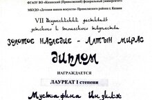 Поздравляем Мустафину Инзилю (преподаватель: Бадрутдинова Эльвира Мансуровна, концертмейстер: Катков Алексей Николаевич) - Лауреата I степени VII Всероссийского фестиваля детского и юношеского творчества «Золотое наследие - Алтын мирас»! Желаем дальнейших творческих успехов и новых побед!