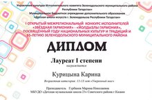Курицына Карина (преподаватель: Гурбанова М.Н.) - Лауреат I степени