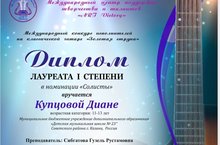 Купцова Диана - Лауреат I степени