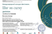 Поздравляем Фасхиеву Диляру (преподаватель: Руднева Анастасия Витальевна) - Лауреата I степени Международного конкурса-фестиваля «Шаг на сцену»! Желаем дальнейших творческих успехов и новых побед!