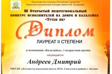 Барсуков Данил (преподаватель: И.А.Замалтдинова) - Лауреат II степени
