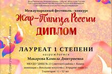 Поздравляем обучающихся нашей школы с успешным выступлением в Международном фестивале-конкурсе "Жар-Птица России"!