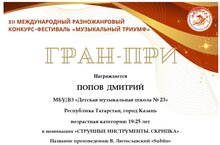 Поздравляем обучающихся и преподавателей нашей школы с успешным выступлением в XII Международном разножанровом конкурсе-фестивале «Музыкальный триумф»!