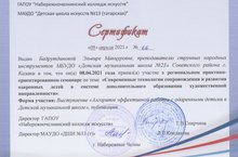 Лауреат I степени - Ансамбль домристов «Карусель»: Ахатова Рената, Авзалова Азалия, Коксанова Кристина, Хузиахмедова Аделя. Преподаватели: Кочергина Н.В., Шарафетдинова Э.Р., концертмейстер: Асадуллина О.А.