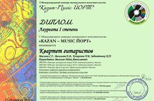Лауреат I степени - Ансамбль домристов «Капель»: Галиуллина Тамчы, Фазылзянова Алсу, Кочкин Эдгар, Тимуршин Самат. Преподаватели: Уварова Л.Р., Кочергина Н.В., Шарафетдинова Э.Р.