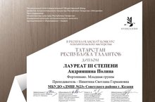Лауреат III степени - Хамидуллин Адиль, преподаватель: Каримова Г.З.
