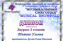 Поздравляем обучающихся нашей школы с успешным выступлением во II Международной олимпиаде по сольфеджио "Музыкальный снегопад"!