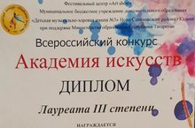 Лауреат III степени - Тучкова В, преподаватель: Абдрашитова А.Р.