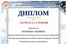 Хадиева Малика (преподаватель: Мухамадиева Гульнара Фирдусовна) - Лауреат II степени