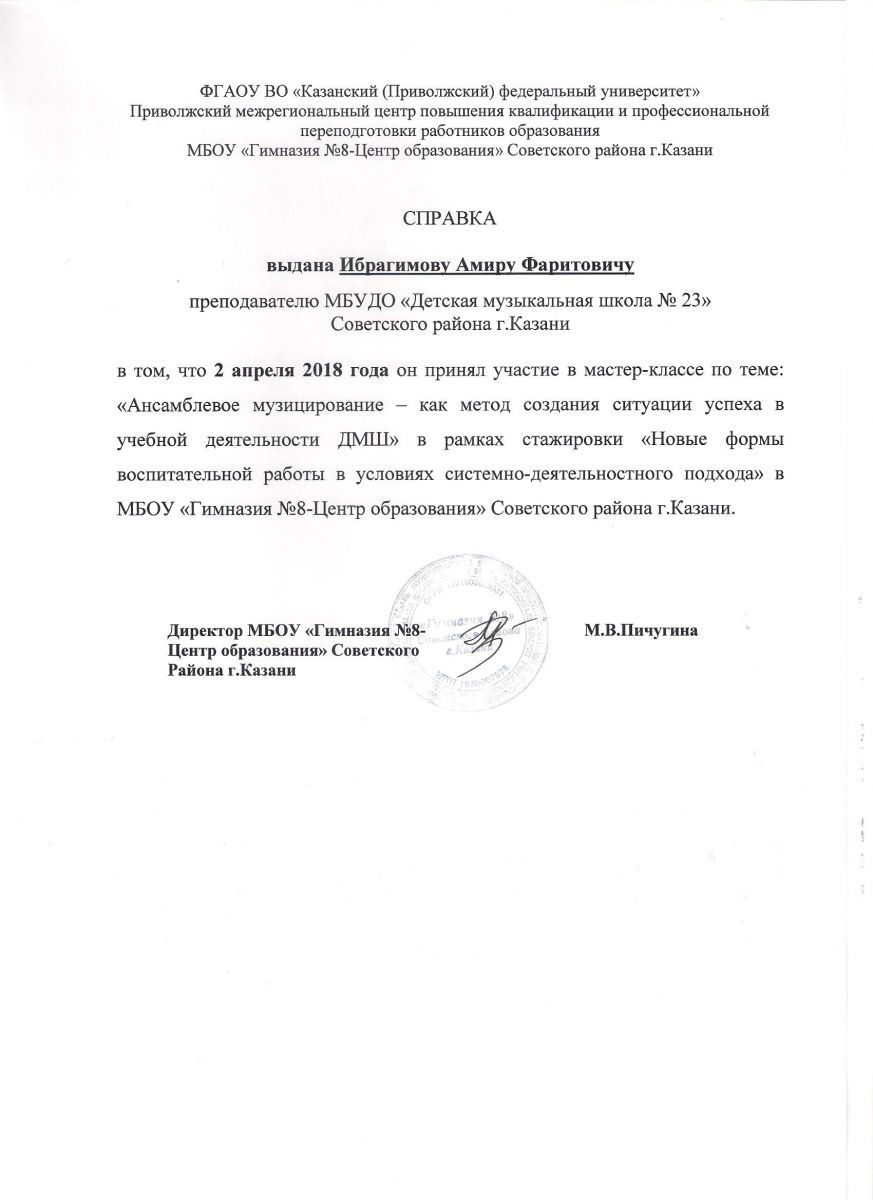 Стажировка в рамках мастер-класса - Сертификат - Шарафетдинова Э.Р.