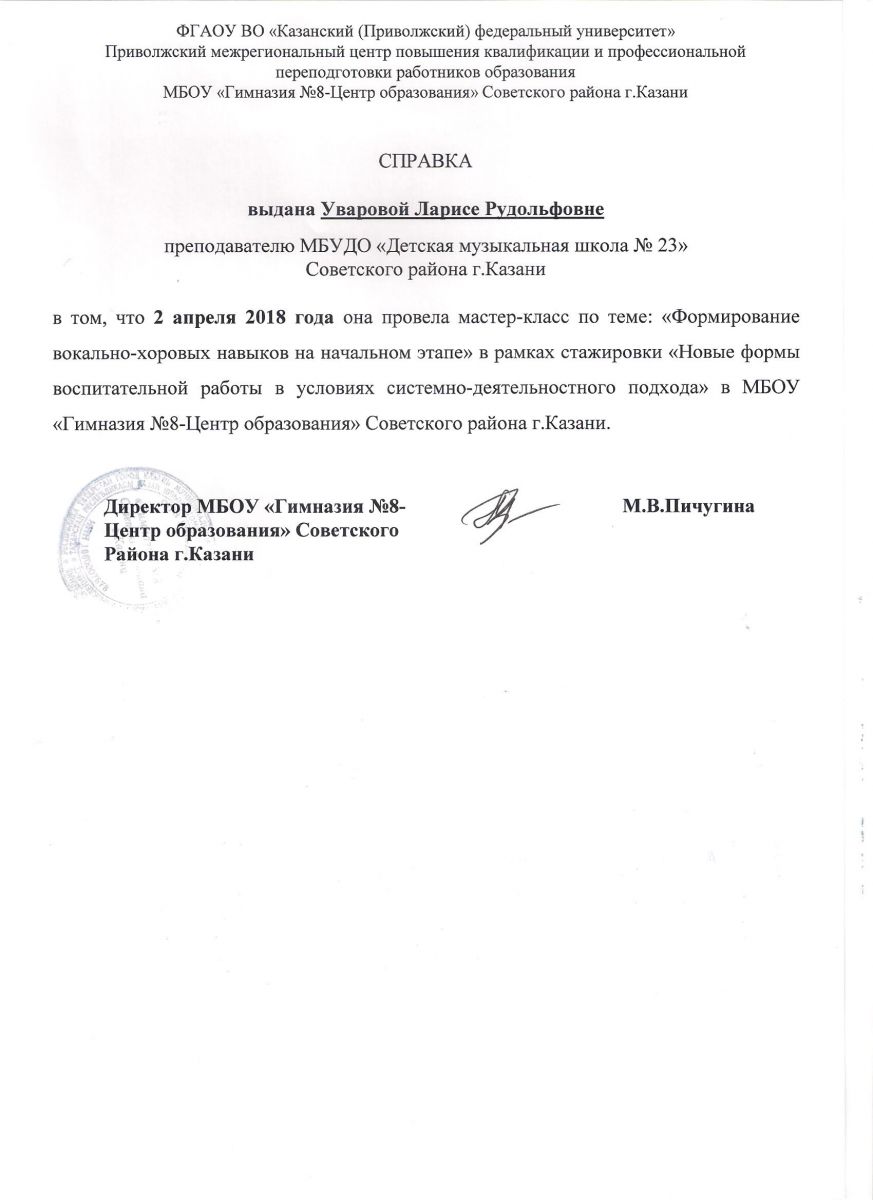 Стажировка в рамках мастер-класса Ксении Башмет - Сертификат - Фаррухшина О.М.