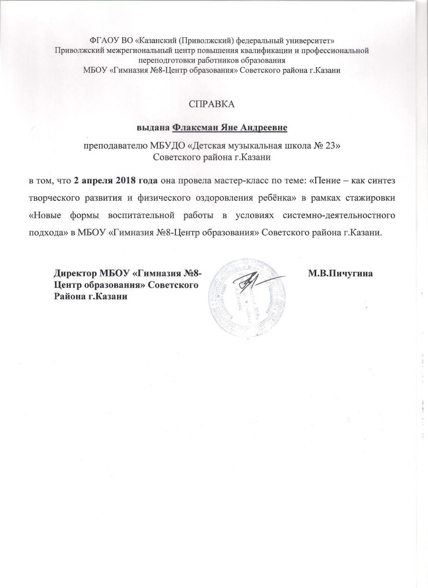 Стажировка в рамках мастер-класса Ксении Башмет - Сертификат - Фахриева Н.М.