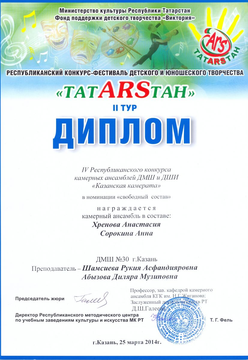 2013-2014 учебный год (Межрегиональные и Республиканские конкурсы и фестивали)