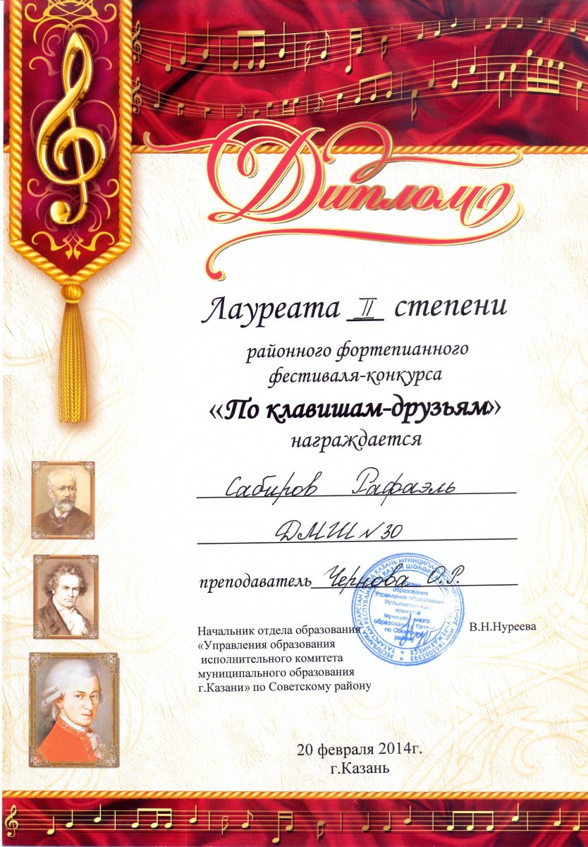 Районный фортепианный фестиваль – конкурс «По клавишам-друзьям» - Сабиров Булат - II место