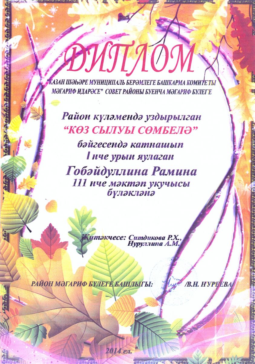 Районный конкурс «Красавица осени Сюмбель» - Габайдуллина Рамина - I место