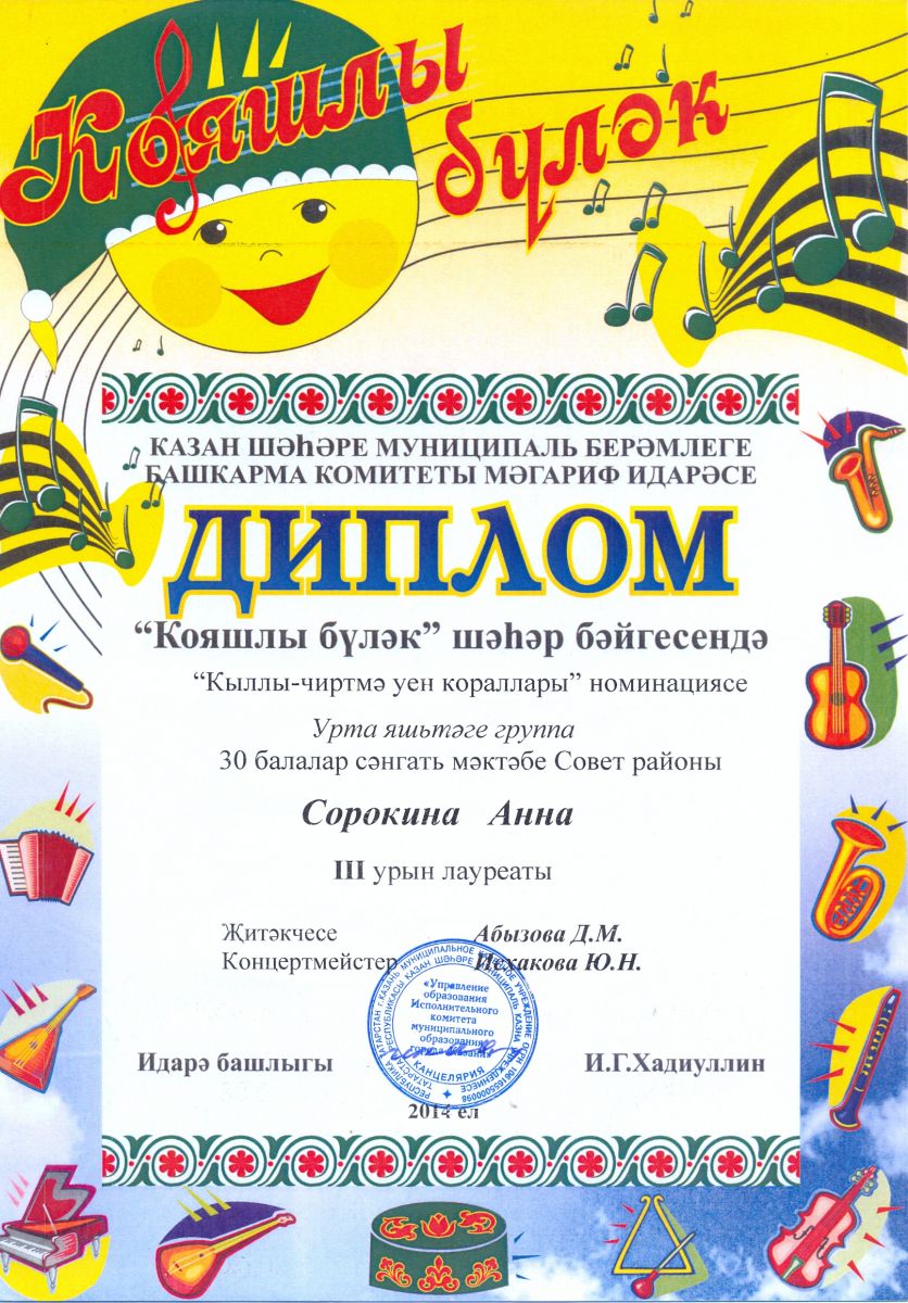 Городской конкурс «Кояшлы буләк» – Сорокина Анна – III место
