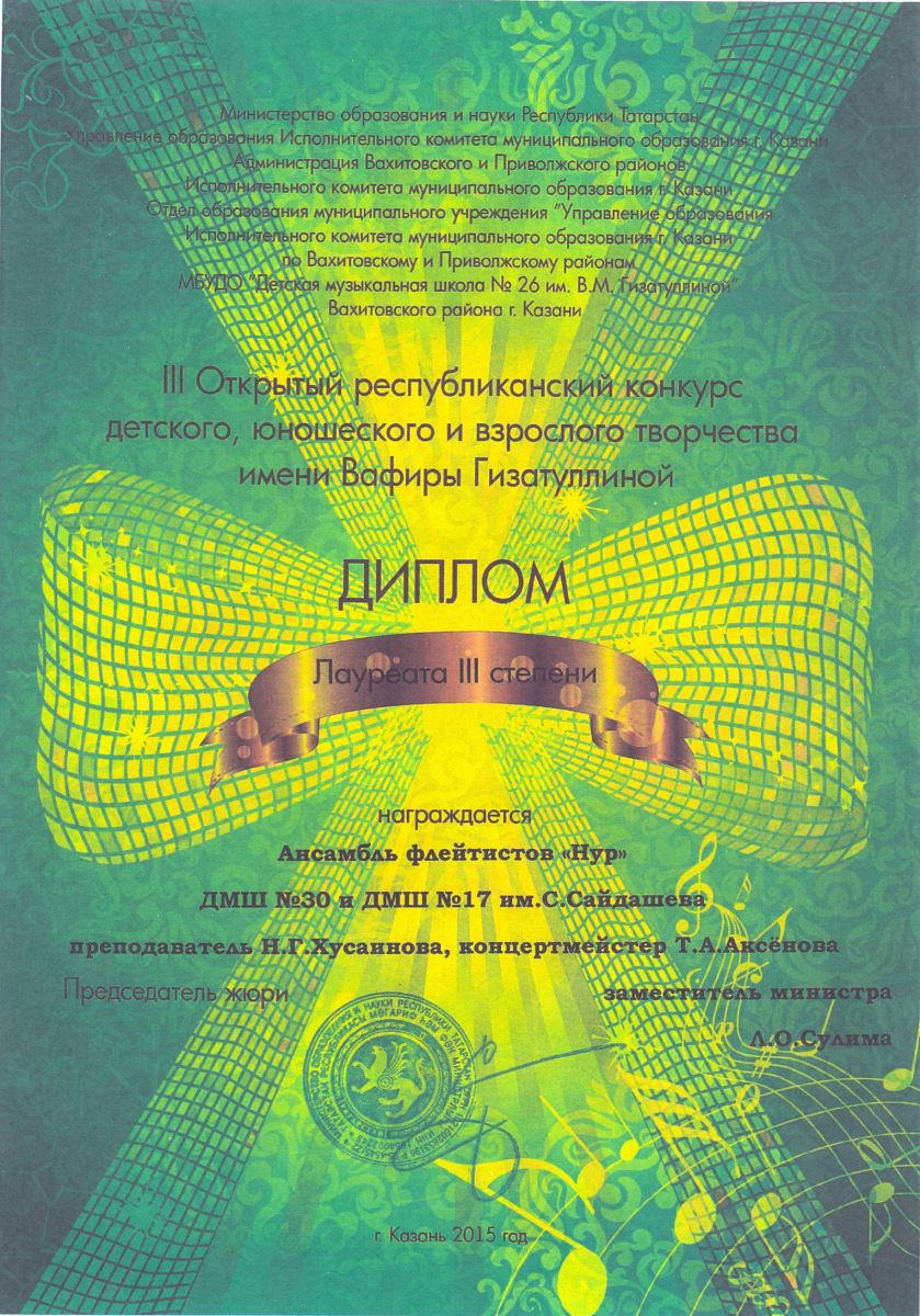 2015 год (Межрегиональные и Республиканские конкурсы и фестивали)