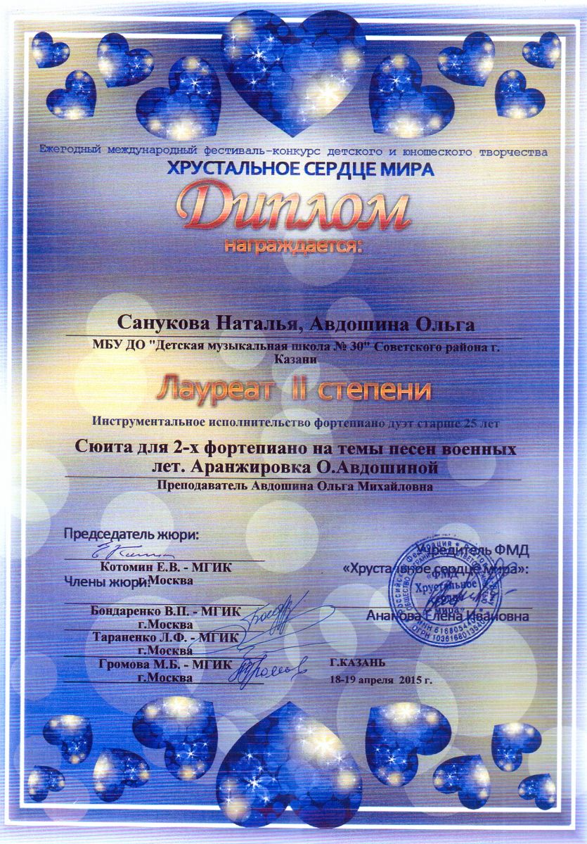 Всероссийская акция «Ночь искусств-2015», фестиваль «В хороводе муз» - Авдошина О.М. – диплом